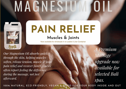 Our Magnesium Oil soothes aching muscles, support healthy bones, boosts energy level and skin health, improves sleep, eases PMS and period pain, relieves constipation and stress (also used in our Deodorant).